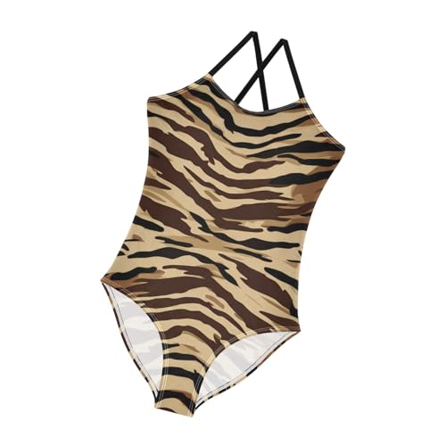 Tiger Stripe Brown Girls One Piece Swimsuit Beach Swimwear 20861847