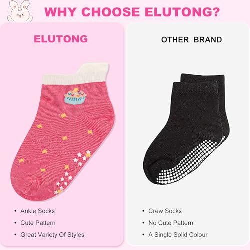 ELUTONG Toddler Socks with Grips Anti Slip Ankle Socks 12 Pairs for 1-7 Years Boys Girls Kids Infant Baby
