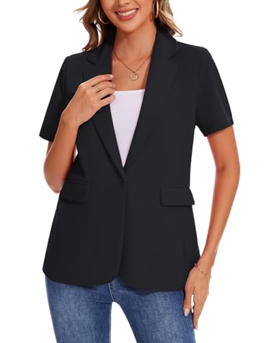 More information about MINTLIMIT Women Short Sleeve Blazer Lightweight Button Front Business Jacket Notched Lapel Work Office Blazers with Pockets