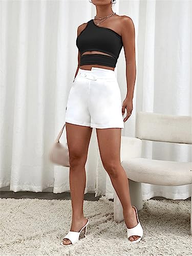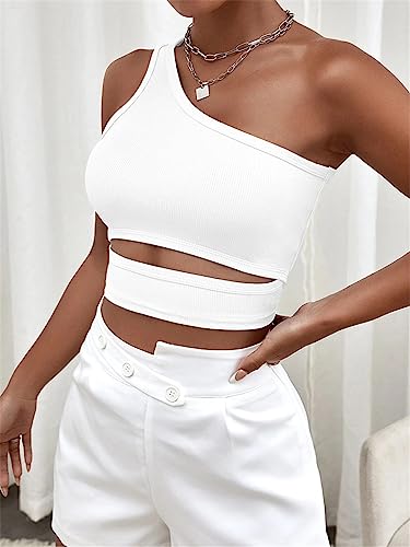 sizzling ! Dninmim Women Knit Tank Top Solid One Shoulder Ribbed Black Vest Slim Short Sleeveless Y2K Camisole