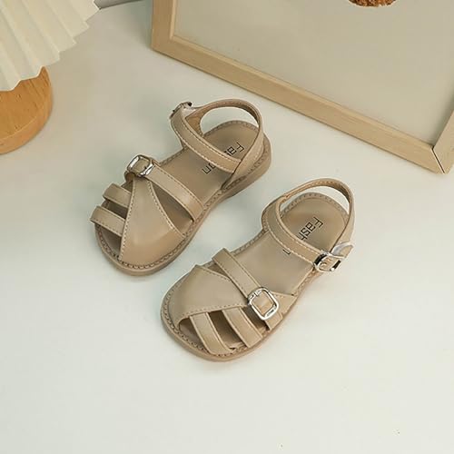 Girls Solid Color Roman 𝐆ladiator Strappy Sandals Buckle Sandal Big Kids Wrapped Head gentle Rubber Low Heels Flat