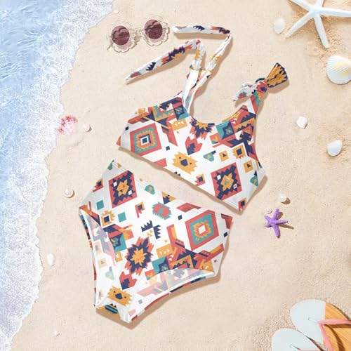 KLL Mexican Fabric Pattern Colorful Girls' 2 Piecing Bikini Set Scoop Neck Bathing Suit Swimwear Adjustable Strap