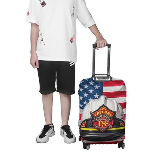 sizzling ! Red Stripe Firefighter USA Flag Luggage Cover, Washable Elastic Suitcase Cover Protector Fit 18-32 Inch Luggage