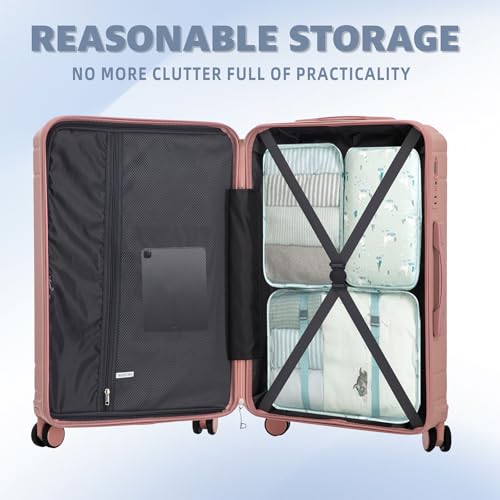 Durable & Waterproof:Our family suitcase set features sturdy watertight ABS external, which is easy to clean and long-term use. It can carry a large weight while having four swivel wheels that can move effortlessly in any direction.Full-Capacity Design Inside Suitcase: Large storage space and fully lined interior with zippered compartment for this hard side luggage sets to keep your items well organized. Low profile top and side handle provide for ease in handling.Retractable Handle:The ergonomically designed push-button 3-step adjustable telescopic handle makes opening and closing a breeze. What's more, it fits any size hand and reduces stress when climbing stairs.Modern Appearance:The sophisticated and smooth vertical stripe design of the rolling luggage makes it more resistant to pressure and wear and brings a good mood to your journey. It includes four molded side feet, they allow the luggage to remain upright even when standing on its side.Large capacity Large space, luxurious interior. The fixed buckle prevents the clothes from shifting, is convenient and practical. There are multiple layers of space, the clothes are layered, clean and easy to take, saving space. Perfect for everyday use. premium materials and excellent craftsmanship ensure long-lasting durability.