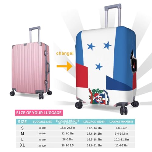 Fashion Baggage Suitcase: Give You A Good Travelling Mood. With The exceptional Half Honduras Half Dominican Republic Flag Pattern Will Also Help You Easy To Find Your Luggage Quickly And Pick Up At The Airport.Durable And Elastic: This Washable Luggage Cover Is Made Of 100d Polyester Material, Only Include One Luggage Cover, Not Including The Suitcase.4 Size Available:S (Suitable For 18-20 Inch Luggage),M(Suitable For 22-25 Inch Luggage),L(Suitable For 26-28 Inch Luggage),Xl(Suitable For 28-32 Inch Luggage),If Your Luggage Cover Is Soft Shell Style,Please Order A Bigger Size.Unique Design Luggage Covers For Suitcase: 2 Openings At The Top For Telescoping Handle And Carrying Handle, Both Sides Have Zippers For Side Handles. The Unique Design Makes You Easy To Fit And Remove.Applicable Scenarios: For Outings, Business Trips And Other Luggage Protective Cover, Our Suitcase Cover Protector Can Protect Your Suitcase From Dust And Scratches. Perfect for everyday use. first-class materials and excellent craftsmanship ensure long-lasting durability.