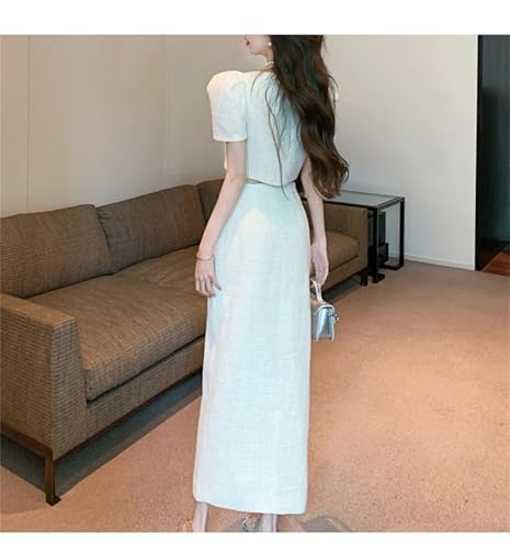 Women's Chic Summer Two Piece Set Square Collar Puff Sleeve Crop Top And High Waist Bodycon Skirts Suit