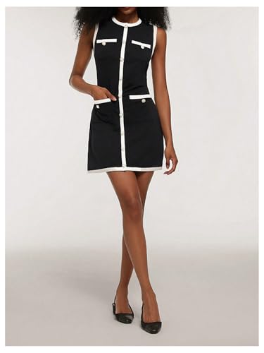 sizzling ! MakeMeChic Women's Button Down Tank Dress Color Block Sleeveless Work Office Short Dresses