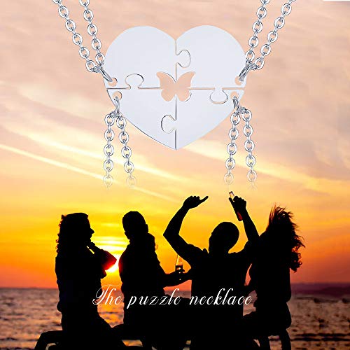 MEALGUET Personalized Name Initial Stainless Steel Heart Shape BFF Puzzle Necklace 2/3/4/5/6 Pcs for Family adore finest Friend Matching Necklace Set