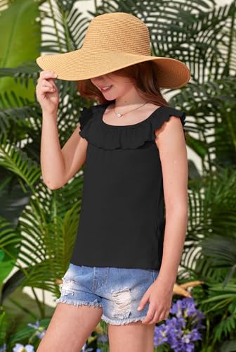 sizzling ! BesserBay Girls Summer Ruffle Trim Square Neck Knit Ribbed Tank Top Cute Strechy Sleeveless Trendy Tee Shirt 5-14 Years