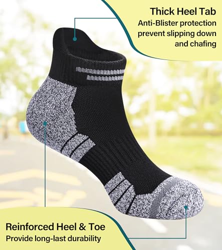 FNOVCO Ankle Socks for Women, Athletic Comfort Cotton Thick Cushioned Running Hiking Socks 5 Pairs
