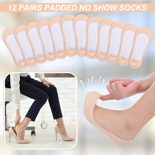 sizzling ! 12 Pairs Padded No Show Socks for Women Non Slip Invisible Thin Low Cut Liner Cushion Boat Socks for Heel Flats
