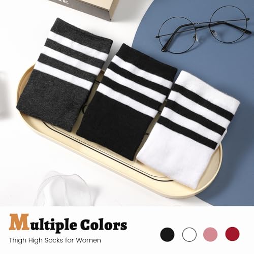 Pleneal 3 Pairs Thigh High Socks for Women Knit toasty Over Knee High Socks Leg Warmers Long Boot Sock