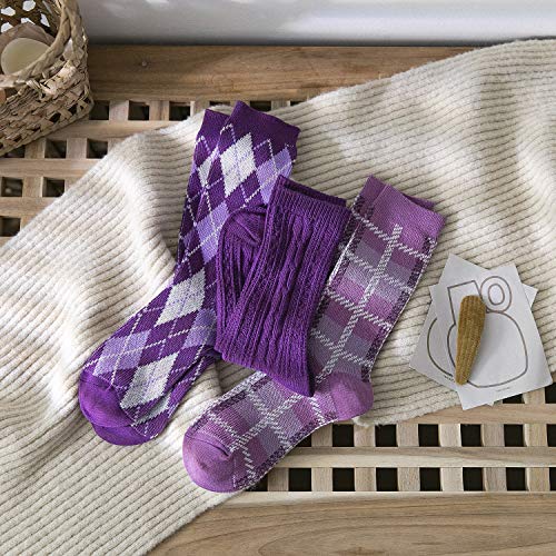 sizzling ! Lacholin Women's 3 Pairs Cotton Casual Crew Socks tartan Patterned Color Socks Knit tender Warm Fashion exceptional Socks for Girls