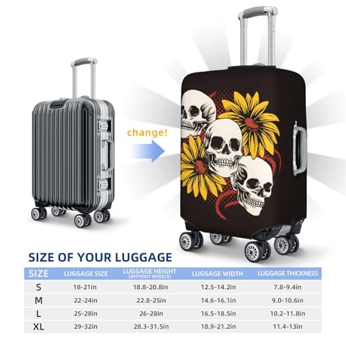 Three Skull Head And Sunflower Travel Luggage Cover Suitcase Protector Bag,Anti-Scratch Fits 18-32 Inch Luggage,Suitcase Sleeve For Kid And Adult,Medium