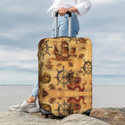 Vintag Ancient Sailboats Luggage Cover Washable Elasticated Luggage Covers for Suitcase TSA Approved chic Scratch Resistant Luggage Case Protector