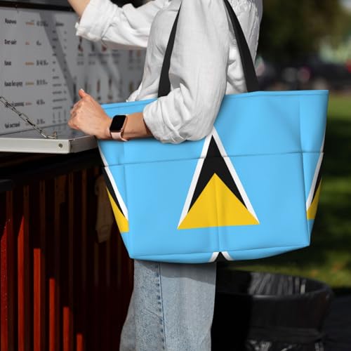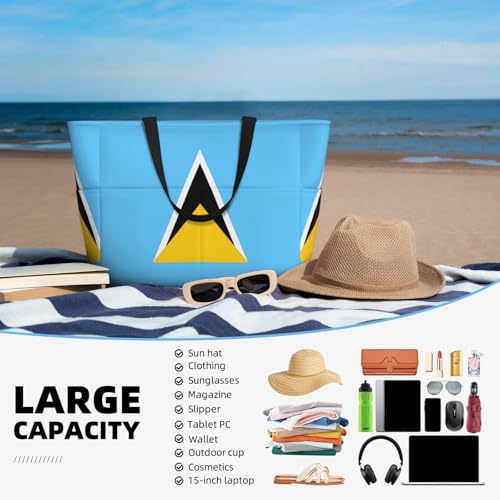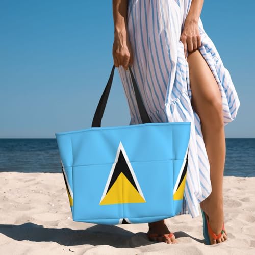 • Flag of Saint Lucia The beach travel bag has a full-body print design, which is visually exclusive and eye-catching. Made of 100% polyester, the fabric is light, straightforward to carry, and wrinkle-resistant and wear-resistant.