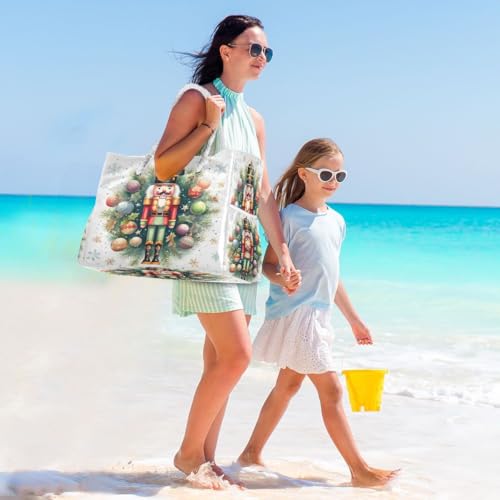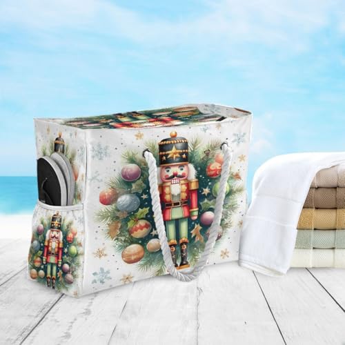 Large Beach Bags Totes Canvas Tote Shoulder Bag Watercolor Nutcracker Water Resistant Bags for Gym Travel Daily