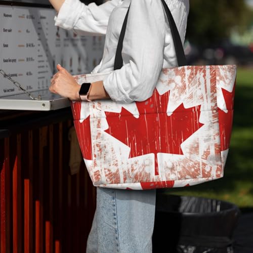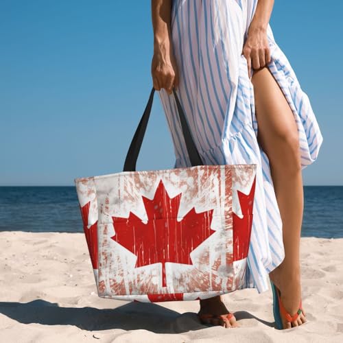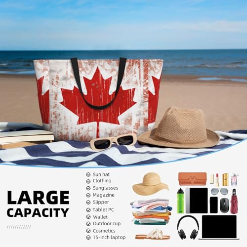 (Canada Flag) Large Beach Tote Bag for Women Waterproof Sandproof Travel Shoulder Bag with Pocket for Pool Vacation Weekend Gym