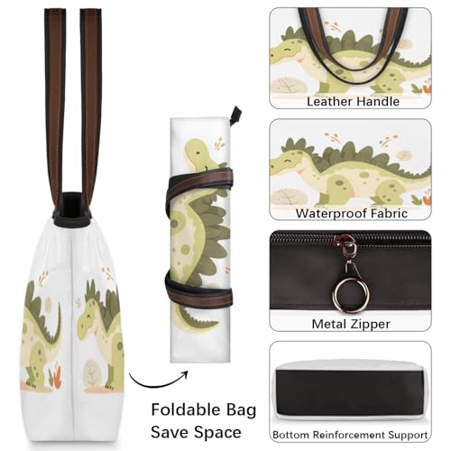 More information about Cute Cartoon Dinosaur Tote Bag Multi Pocket Zippered Beach Bag Lightweight Waterproof Handbag
