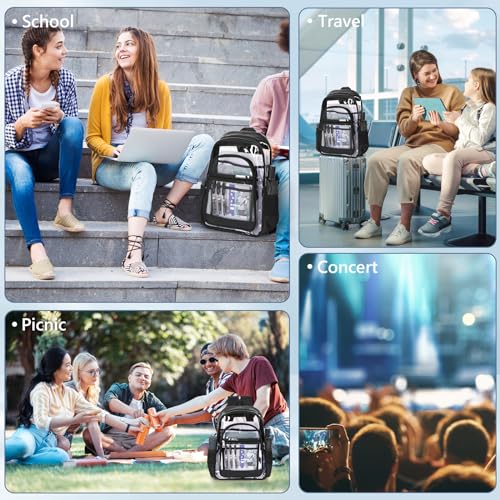 Clear Backpack, Clear Bookbag Large Casual Backpacks Heavy Duty PVC Transparent Backpacks with Multi-pockets See Through Backpack for School College Concert Work Travel, Black