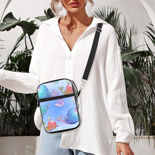 Watercolor Cute Unicorns Whales Clear Crossbody Bag Stadium Bag Adjustable Side Shoulder Bags Messenger Bag with 2 Compartments