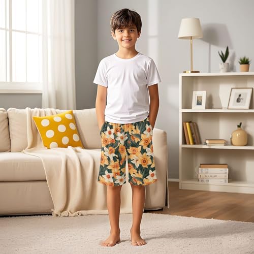 sizzling ! Flower Orange Short Pajama Pants Bottoms velvety Sleepwear with Pockets
