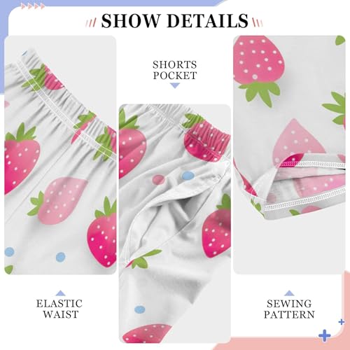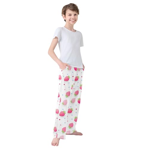 Strawberry Fruit Long Pajama Pants Elastic Waist PJ Bottoms with Pockets S A110352