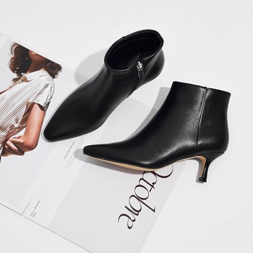 GENSHUO Kitten Heel Ankle Boots for Women Closed Little Square Toe Booties 2 Inch Heels Elegant Side Zipper Low Boots Fashion Party Fall Shoes