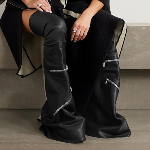 • - Innovative Design: Featuring striking silver metal zipper accents that contrast against the sleek black upper, these over the knee boots deliver a exclusive aesthetic that stands out in any setting.