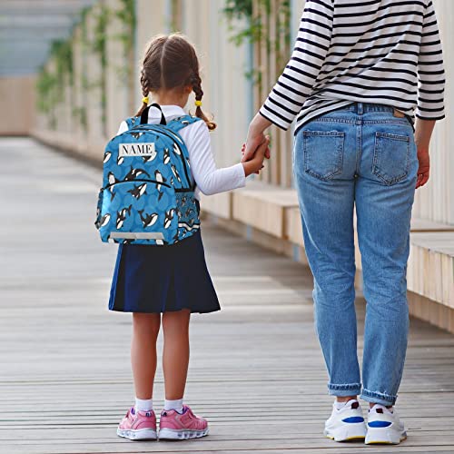sizzling ! Toddlers Backpack with Name Customization Orca Killer Whale on Blue Kids Childish Bookbag for Boys Girls 3-6 Years Children Kindergarten Preschool School Bags with Reflective Strips Daypack