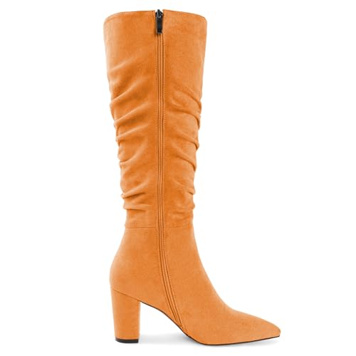 Knee High Boots for Women Chunky Heel Boots timeless Pointed Toe Boots Slouchy Booties for Work Office cozy Retro High Heel Boots