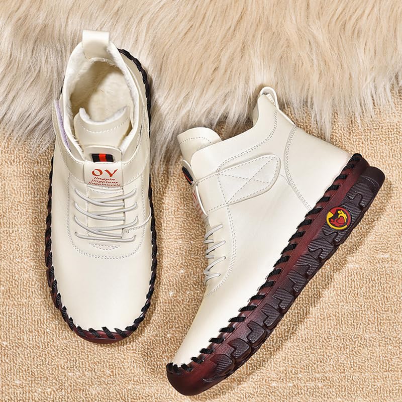 CrazySavage Womens Leather High Top cozy Snow Boots Winter Fur Lined Thickening Thermal Villi Softsole Anti-Slip Ankle Booties Mom Handmade Loafers