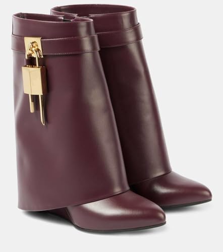 More information about Women's Fold Over Boots Shark Lock Wedge Boots Pointed Toe Ankle Boots Fashion Trendy Wide Calf Dress Boots in Black, Brown, Wine Red Short Booties