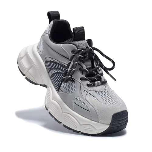 Womens Chunky Sneakers, Fashion cozy Round-Toe Sneakers for Women, Leather Lace Up Casual Platform Shoes, Comfortable Tennis Runnig Shoes