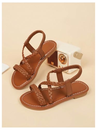 - Braided sandals for girls, ankle strap summer shoes, open toe vacation sandals