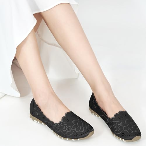 • Skin-Friendly Upper: The upper of this women's flats is made of supple PU material with a rare pattern and hollow design. It offers good breathability and comfort, keeping your feet dry and preventing scratches.