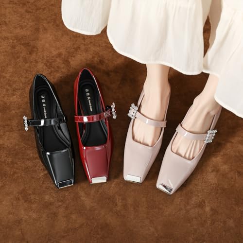 Origin: ImportedSole material: RubberOuter material: Faux LeatherClosure type: BuckleFashion sophisticated:These fashionable flat Mary Jane shoes feature an adjustable diamond-adorned square buckle for sparkle, a protective wide square metal toe cap, and a sleek patent leather upper.Design Details:Compared with stilettos, low block heels are more comfortable and stable for walking. Square Rhinestones buckle reveals a unique elegant charm, and simple styles never go out of style. Instep strap style is convenient for daily life.Non-slip Out sole: The rubber out sole is wear-resistant and non-slip, and the ergonomic sole design can provide stable support and comfortable wearing experience, whether it is for daily traveling or long time standing and walking.Occasions: The simple yet elegant design makes these shoes versatile for any occasion—perfect for shopping, weddings, parties, dates, or work. They instill confidence while highlighting your elegance.Buy With Confidence: For the perfect fit, we recommend checking our size chart before ordering—located in the product description or footer. Taking a moment to measure your feet ensures your footwear feels comfortable from the first wear and helps avoid sizing surprises. Perfect for everyday use. premium materials and excellent craftsmanship ensure long-lasting durability.