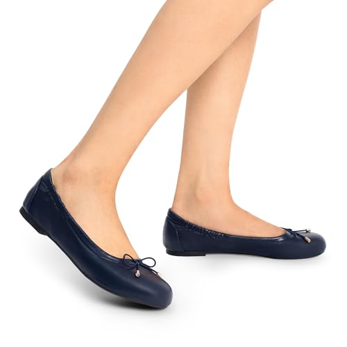 Sole material: Synthetic RubberOuter material: Faux LeatherClosure type: Pull-OnChic Style: These women's flats feature a round-toe design for a roomy fit and a decorative bowknot for a sleek touch.Cushioned Steps: With a thick latex insole, these ballet flats for women provide cushioned support for all-day comfy wear.Enhanced Comfort: To protect feet from chafing and blisters, these flats for women are designed with a padded collar that provides extra cushioning around the heel area.Flexible Outsole: Walk with confidence and style in these slip on shoes for women. The TPR outsole is slip-resistant and foldable that makes it convenient to fit into your bag.Versatile Staple: These flats for women effortlessly style with jeans, dresses, or skirts for a casual look, ideal for commuting, traveling, and everyday wear.Suitable size: To ensure the best fit, we recommend sizing up a half size. Perfect for everyday use. top-grade materials and excellent craftsmanship ensure long-lasting durability.