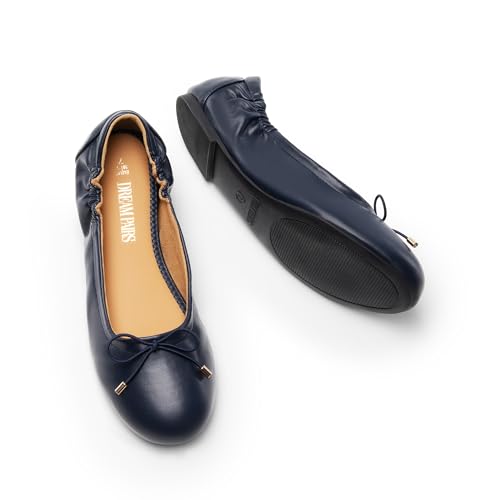 DREAM PAIRS Women's Ballet Flats, Foldable Round Toe Dress Shoes, cozy Slip On Work Flat Shoes with Bowknot
