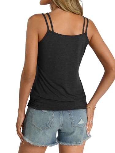 Womens Banded Bottom Spaghetti Strap Tank Top Scoop Neck Pleated Camisole Tops Summer Sexy Sleeveless Shirts Dressy