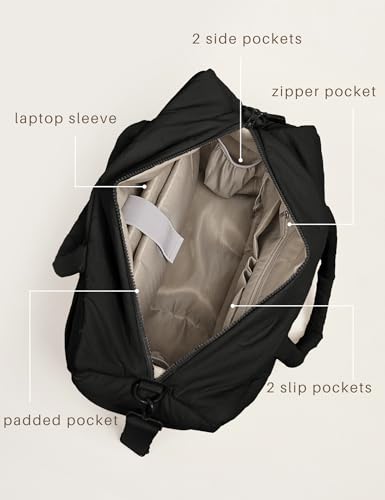 Puffer Tote Bag with Laptop Compartment, Quilted Shoulder Bag for Work Gym, Puffy Travel Carry On Tote with Zipper