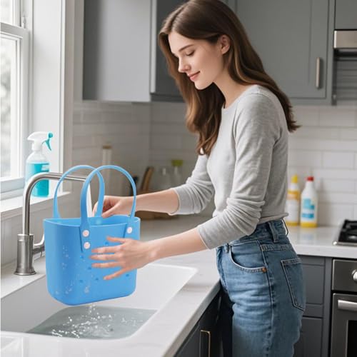 sizzling ! Rubber Tote Bag Small Beach Bag Waterproof Outdoor Tote Bag Washable Tote Portable Travel Bag Open Handbag for Girls/Kids
