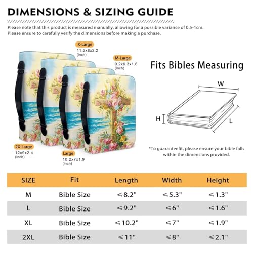 Brand: FUIALDOLGColor: Beach Rose Cross-cManufacturer: FUIALDOLG【LARGE CAPACITY】The bible carrying case for boys girls is reasonably distributed, and the large capacity design can orderly store mobile phones, books, pens, notebooks, and so on.Make the interior of your bible bag cleaner, effectively solving storage issues.【solid MATERIAL】The Bible cover is made of premium PU leather material. Made of lightweight and wear-resistant material, it is waterproof and friction-resistant to effectively protect your Bible and keep it better and safer.【MULTIFUNCTION】This Bible case holds standard size Bibles with one front pocket and multiple interior pockets. Keeps the interior tidy and easy to access Good for many uses This Bible case can also be used as a purse-style tote, handbag, cosmetic bag, iPad bag, and book cover.【EASY TO CLEAN】This Church bag is water resistant, wipeable and machine washable.【RELIGIOUS GIFT】It makes for a great gift for your family, friends, unisex, teenage girls, on Halloween, Christmas, Thanksgiving, Women's Day, Valentine's Day, Mother's Day, Easter, birthdays, and more. Perfect for everyday use. High quality materials and excellent craftsmanship ensure long-lasting durability.