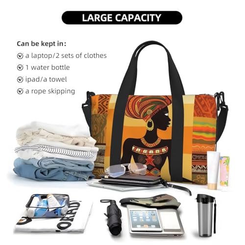 Travel Duffel Bag for Men Gym Bag, African Woman Luggage Bag with Shoulder Strap, Large Gym Tote Bag for Women, Weekender Overnight Bag, Foldable Carry on Bag for Airplane