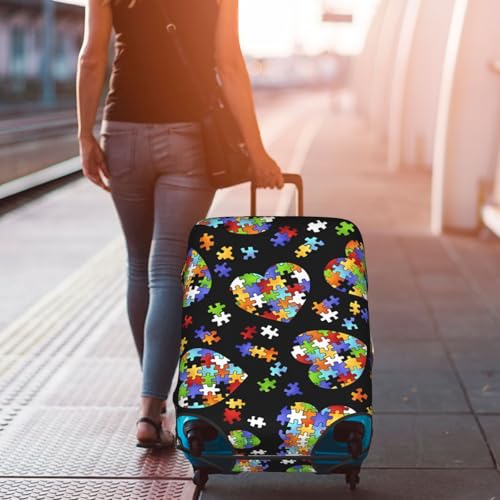Medium Vibrant Double-Sided Print: Featuring consistent double-sided pattern Autism Awareness Puzzle Pieces Heart printing, this suitcase cover makes your luggage stand out with rare style and ensures high recognition at airports or hotels.Premium Stretch Fabric: Made from high-elastic jersey fabric, the luggage protector fits snugly around your suitcase, ensuring it stays securely closed during travel while resisting deformation.Reinforced Stitching & Durable Protection: Double stitching throughout enhances durability, protecting your luggage from dust, scratches, and wear, while maintaining a sleek and fashionable appearance.Thoughtful Design with Invisible Zipper: Includes one central invisible zipper, dual side handle cutouts, a top carry hole, and a secure buckle for easy access and hassle-free use, compatible with both left and right-handled trolleys.Perfect Travel Companion: Ideal for travel and business trips, this fashionable and washable suitcase cover adds aesthetic charm while keeping your wheeled luggage clean and damage-free. Perfect for everyday use. premium materials and excellent craftsmanship ensure long-lasting durability.