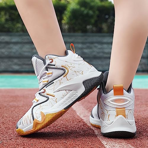 Sole material: RubberOuter material: Polyurethane (PU)Closure type: Lace-UpRubber sole【Slip-resistant soft sole】: The high-top sports shoes are made of rubber sole material, which has high elasticity and flexibility. The exclusive sole pattern design enhances the grip and provides impact cushioning, distortion resistance and abrasion resistance, providing you with better protection. As an excellent running shoes, it is non-slip and safe.【Various applicable occasions】: This casual shoes is suitable for various life scenes, you can wear it as walking shoes, tennis shoes, jogging shoes, etc.Breathable upper: The basketball shoes for boys with softness fly woven to keeps feet dry and excellent breathableOccasion: Children's sports shoes are suitable for walking, traveling, running, jogging, horse riding, outdoor sports and other activities Perfect for everyday use. top-grade materials and excellent craftsmanship ensure long-lasting durability.