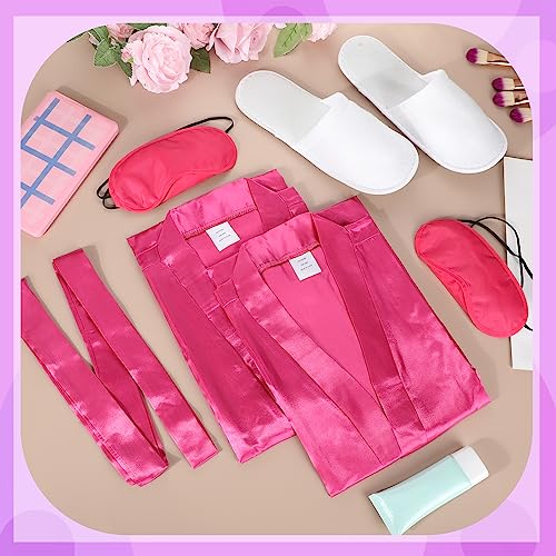 Ramede 54pcs Spa Robe Sleepover Party Supplies Satin Bridesmaids Robes Includes 18 Kimono Robe Rose 18 White Hotel Spa Slippers 18 Eye Mask for Women Princess Birthday Wedding Party