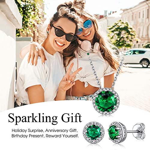 Material: Synthetic Diamond, Synthetic Emerald, Sterling SilverMetal type: Sterling SilverClasp type: LobsterChain type: RoloGem type: Created EmeraldMay-Created Green Emerald Birthstone Necklaces 8mm wide Green Emerald Gemstone Necklaces embellished with 1mm white Cubic , exquisitely inlaid in high polished 925 Sterling Silver. These glittering crystals will shimmer with the slightest movement. So flattering and sparkling, just like the real diamond! There are 12 different colors of Gemstones, corresponding to the birthstone of each month. You can choose the color according to the birth month.Round Diamond Necklaces For a timeless, elegant style, there is nothing better than the Diamond Necklaces jewelry! This Round diamond pendant is undying neck fashion among the trend-conscious. It will create an elegant look arround your neck and illuminate your face.It is shiny and classic which will make you special, so sleek to catch your audience's eyes and stand out the crowed.Hypoallergenic Sterling Silver Necklaces Made of high polish 925 sterling silver which is nickel-free, lead-free, friendly for sensitive ears. Sterling Silver jewelry is resistance to rust, oxidation and discoloration, make it ideal for long-lasting jewelry designs. durable and scratch resistant.Great Birthday/Love/ Inspiration gifts: Bestyle Gift Package with black Velet. Ready to be gifted for your Mother, Wife, Grandma and your Favorite Friends on Valentine's Day, Anniversary, Birthday, Mother's Day, Thanksgiving Day, Vacation, Holiday, Parties, Christmas, wedding celebrationCustomer Service: Committed to Provide top-grade Customer Service, If you have any problem,Contact us Freely and will offer solution to give you a pleasing and worthy purchase. Perfect for everyday use. High quality materials and excellent craftsmanship ensure long-lasting durability.