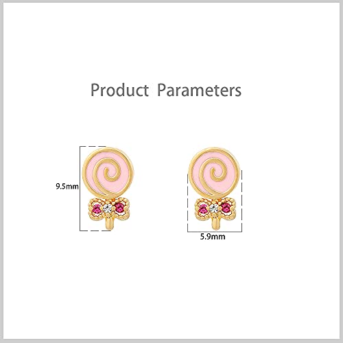 CZ Mini Lollipop Crystal Stud Earrings for Women Teen Girls 925 Sterling Silver Post Pin Cubic Zirconia Gold Plated Cartilage Charm Fashion Cute Candies Earring Birthday Easter Jewelry for Daughter