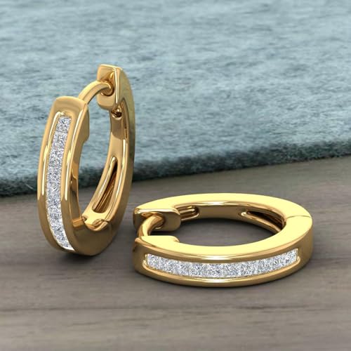 sizzling ! 1/5 to 1/4 Carat Channel Set Natural Diamond Hoop Earrings in 10K Gold